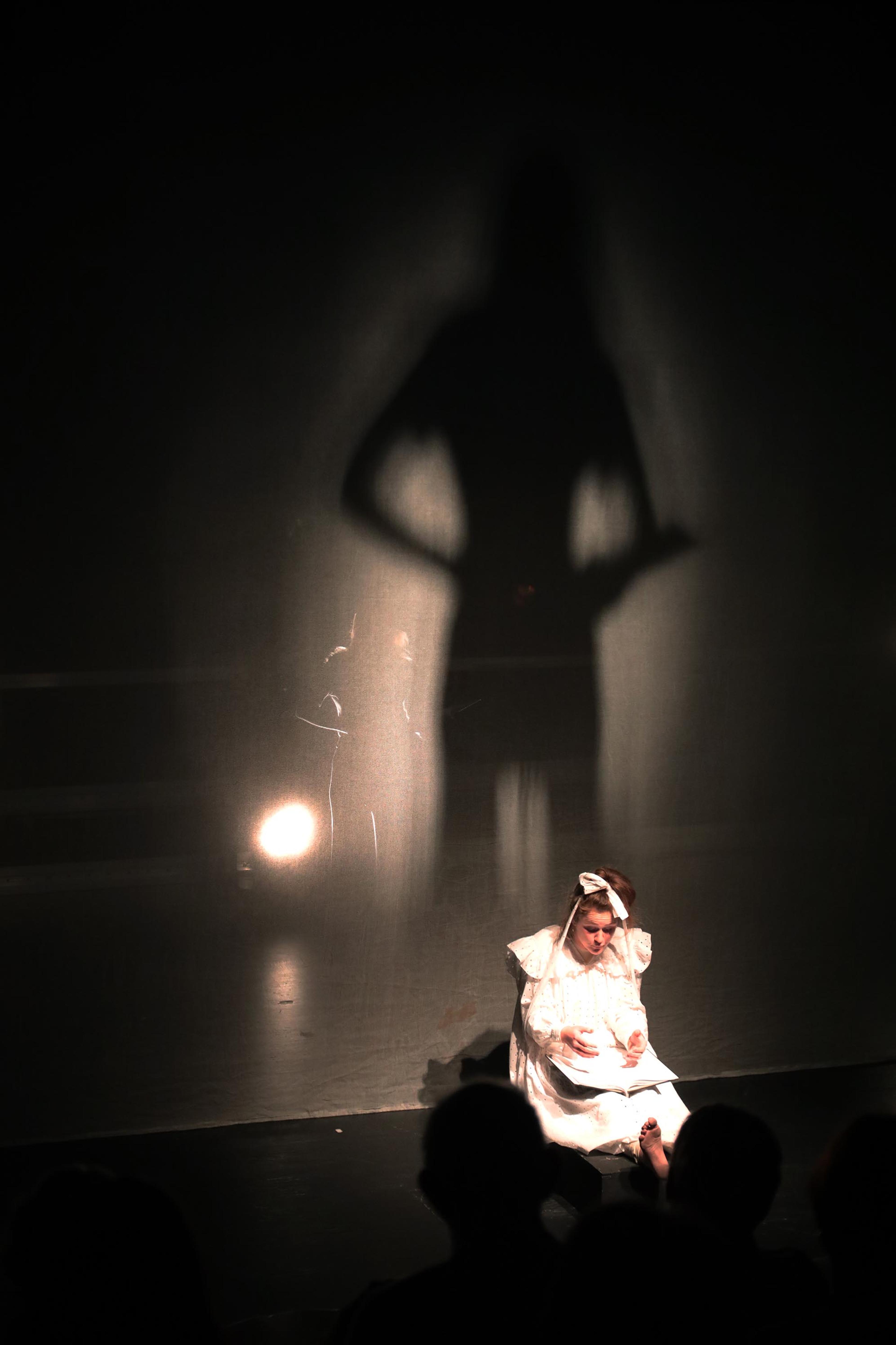 Um die Traumhaftigkeit des ersten Teils darzustellen, zeigten wir dort nur die Schauspielerin von Ada vor dem Vorhang, die anderen drei Schauspieler, welche die Figuren der Mutter und zweier Puppen darstellten, befanden sich hinter dem Vorhang und waren nur durch Schatten auf diesem zu sehen. Das Stück lässt offen, ob Ada mit echten Personen spricht, ob die Ereignisse wirklich passiert sind, oder ob alles nur in Adas Kopf stattfindet. Dieses Verschwimmen aus Fiebertraum und Wirklichkeit wurde durch die Schatten auf dem Vorhang artikuliert. Um dem Publikum dennoch ein Gefühl für die echte Ada Lovelace zu geben, wurden immer wieder Fakten aus ihrem Leben auf den Vorhang projiziert.