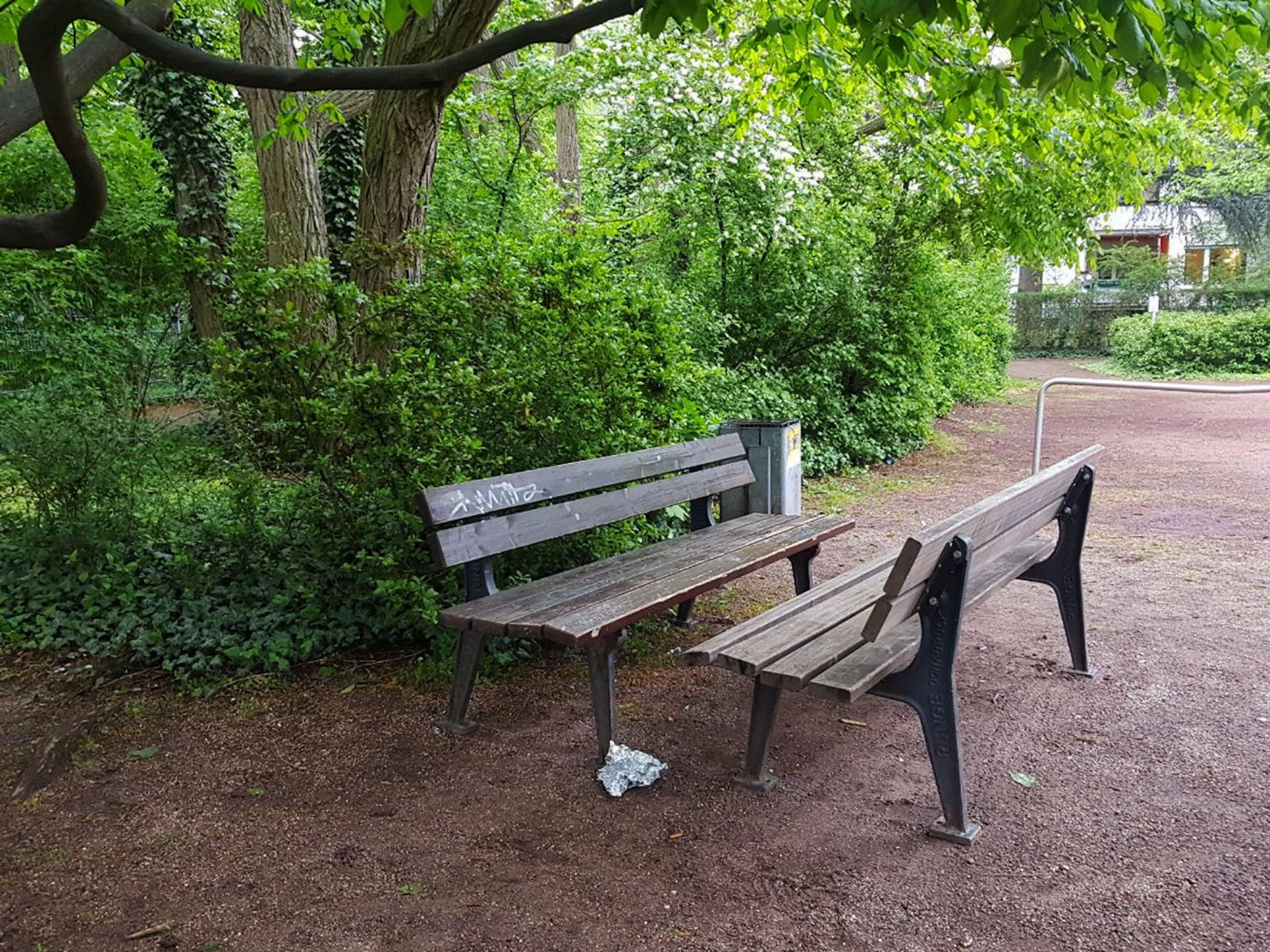 In einem bewussten Eingriffs in diese festgesetzte Platzierung wurden Parkbänke umgestellt.
