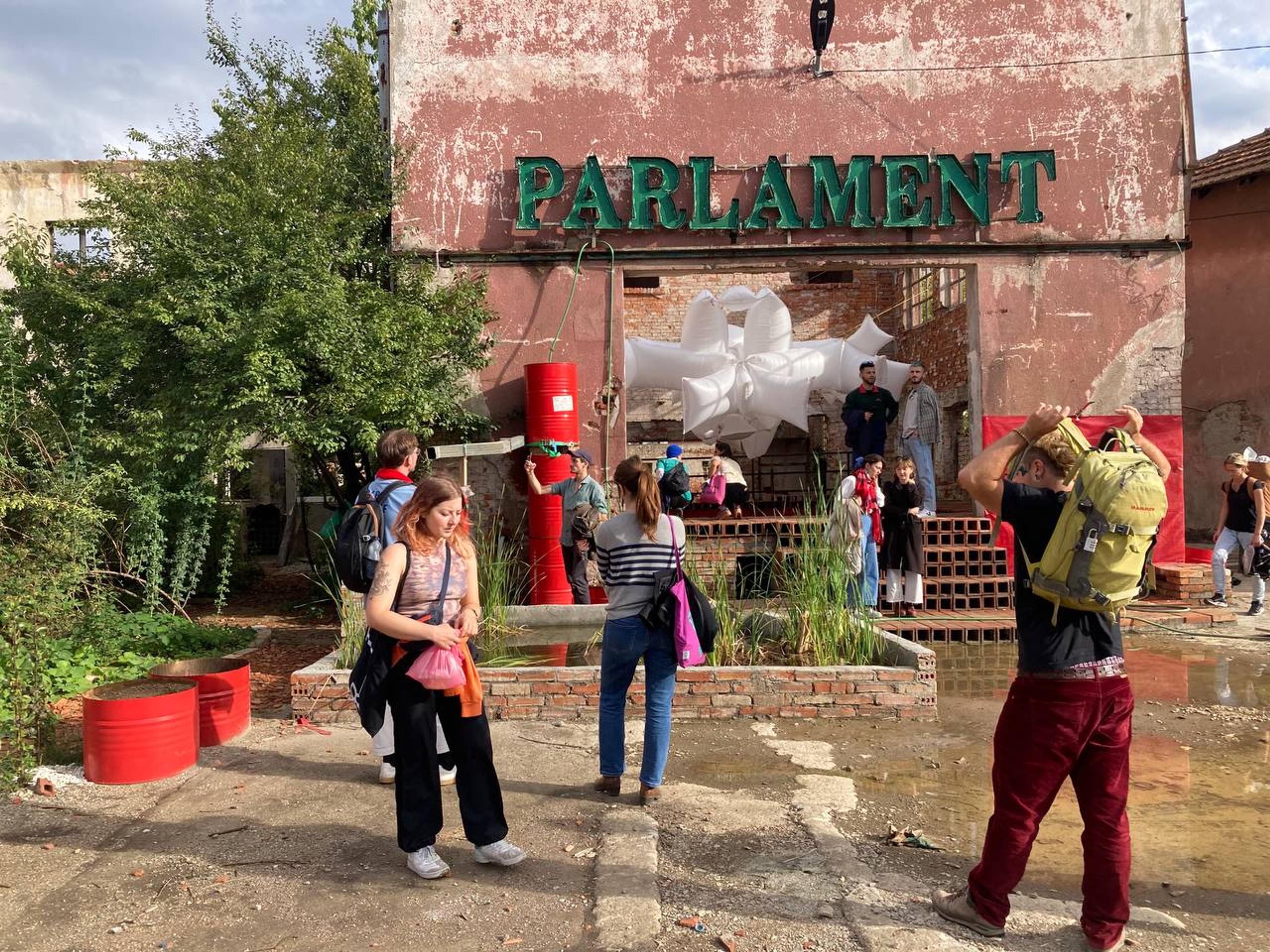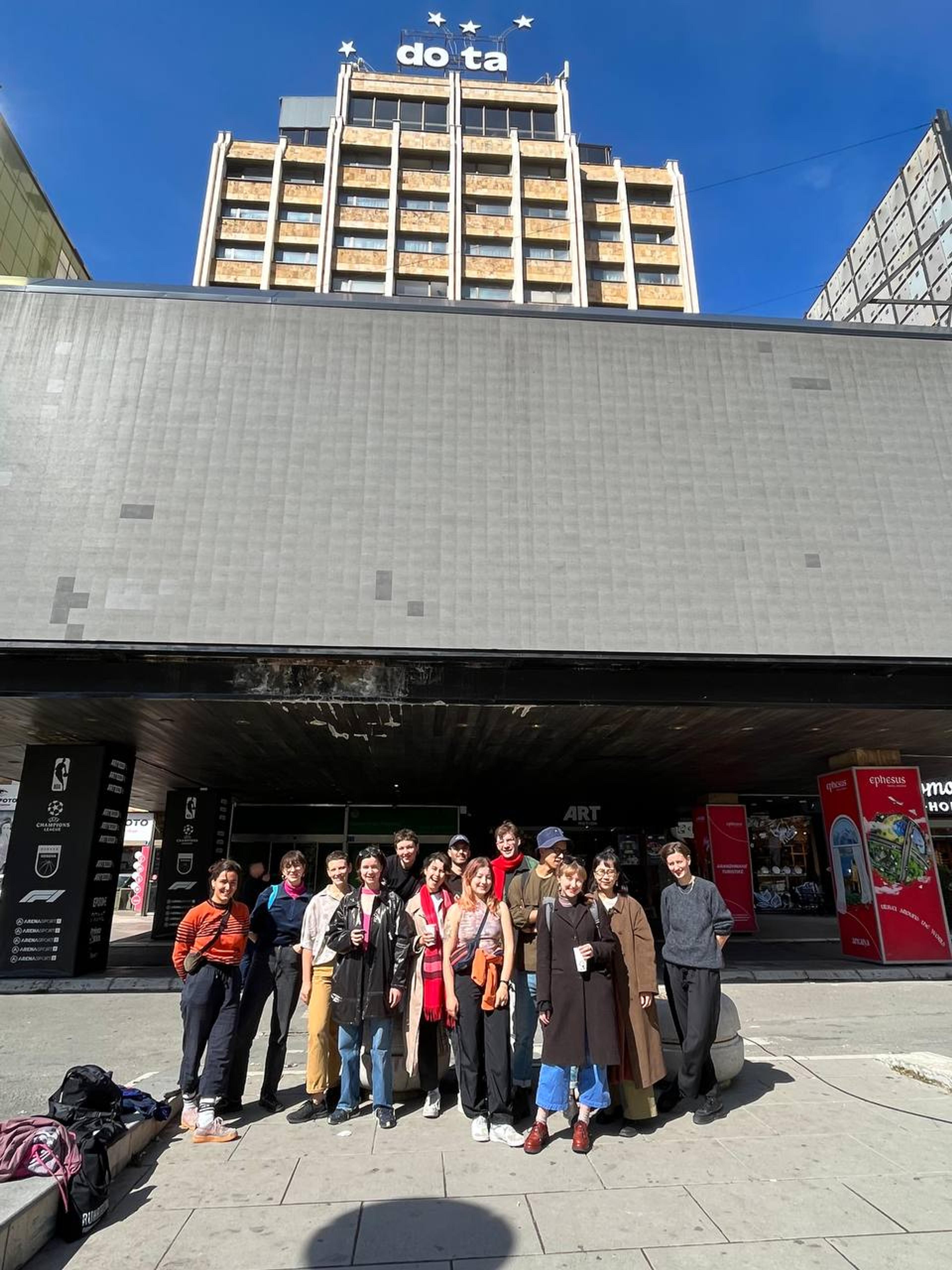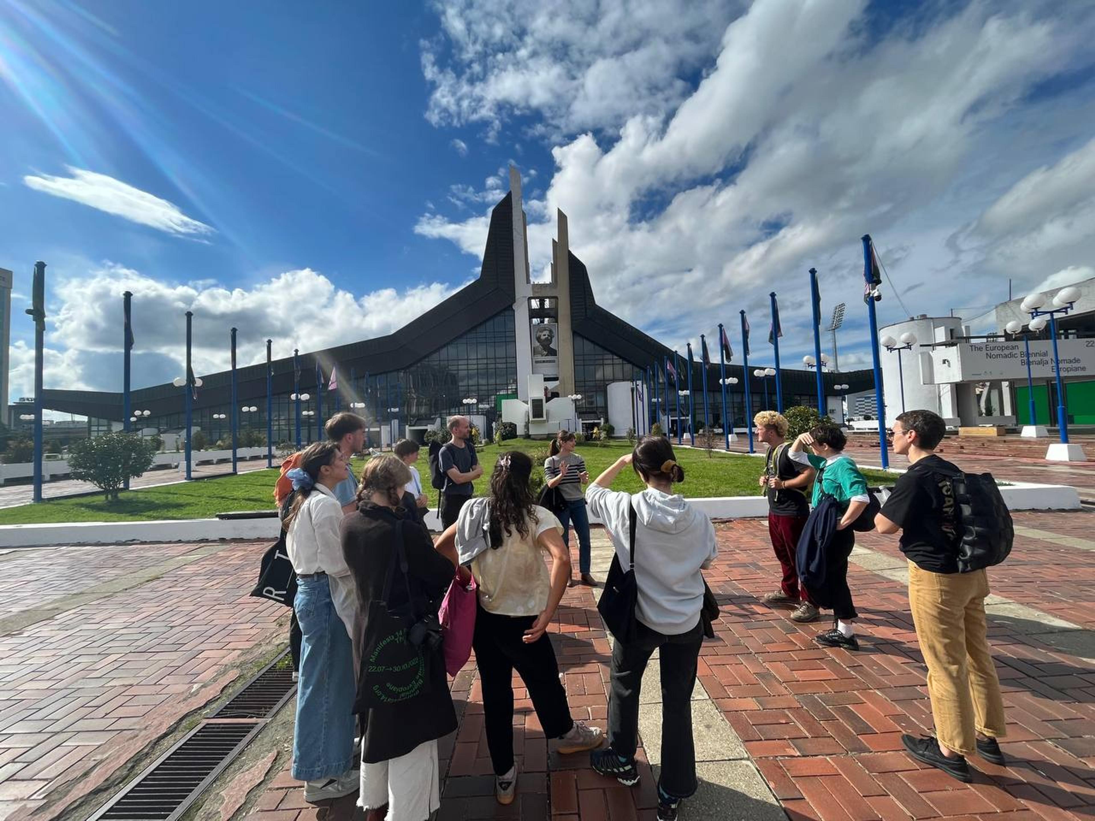 Im September unternahmen wir einen 5-tägigen Ausflug zur 14. Ausgabe der Manifesta-Biennale in Priština, Kosovo. Viele künstlerische Beiträge waren über die ganze Stadt verteilt, so dass wir meist zu Fuß durch die Stadt gingen, um einige der Ausstellungsorte zu sehen. Abends trafen wir uns in der Regel, um kosovarisch zu essen, in eine Bar oder ins Kino zu gehen. An einem Abend stürzten wir uns in eine offizielle Ausstellungseröffnung in der Nationalbibliothek mit Getränken und Buffet (und wurden später dazu eingeladen). Wir hatten zwei Führungen und ein Gespräch mit der in Priština geborenen Architektin Erzë Dinarama, die uns als Teil des Architekturteams von der Arbeit des Kollektivs und ihrer Sicht auf die Manifesta und deren Einfluss auf die Stadt berichten konnte. Nach 5 Tagen trennten wir uns wieder, einige fuhren mit dem Auto zurück, einige fuhren weiter nach Süden und einige flogen zurück nach Deutschland.