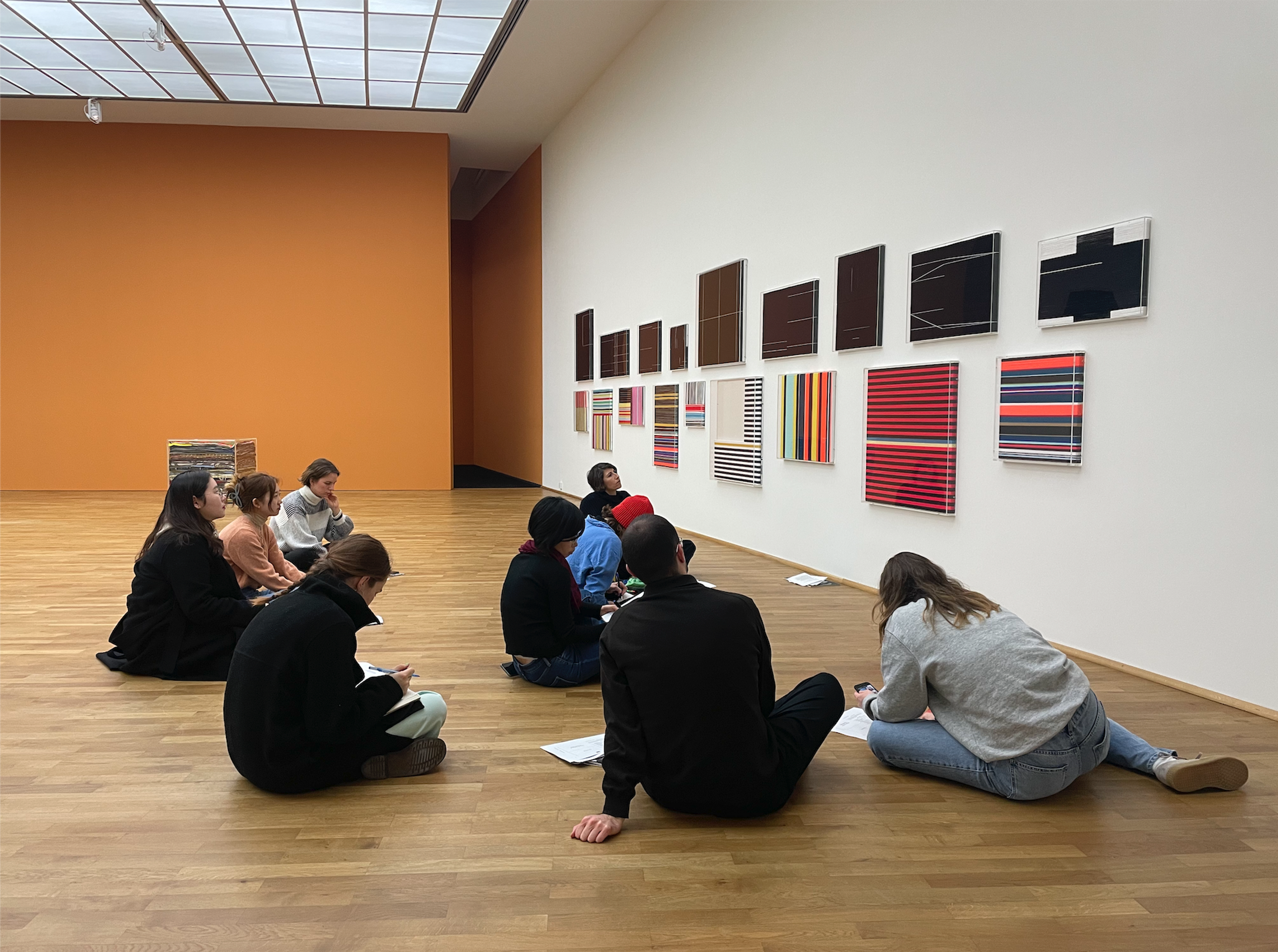 In February the Textile Colloquium at the HfG went to see the Rosemarie Trockel retrospective in Frankfurt, taking a closer look at her fabric works. The Textile Colloquium provides a space for students of all disciplines at the HfG working with the textile medium to deepen their artistic research and to exchange with each other, focusing on textiles in relation to spatial practice.