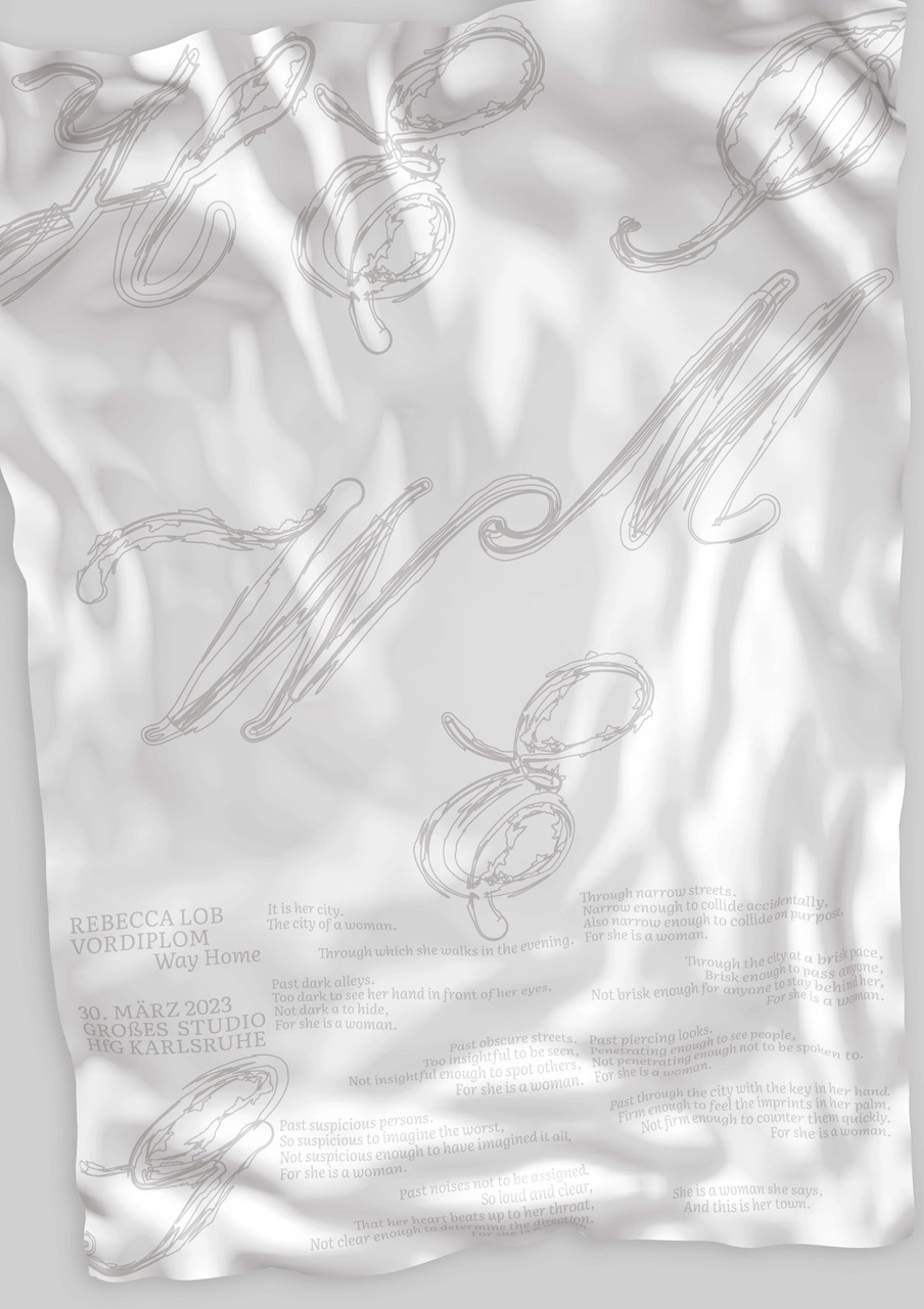 Monatelange Recherche, Interviews mit eben genannten Personen sowie Mapping von vermiedenen Räumen auf ihren Heimwegen geben die Form für die Installation. Ein Audiotext, erzählend über den Heimweg einer FLINTA*-Person, begleitet die Rezipient:innen durch diese hindurch und gibt intime Eindrücke in den Gefühlspool und die Gedankenspirale, resultierend aus zahlreichen gesammelten Erfahrungen.