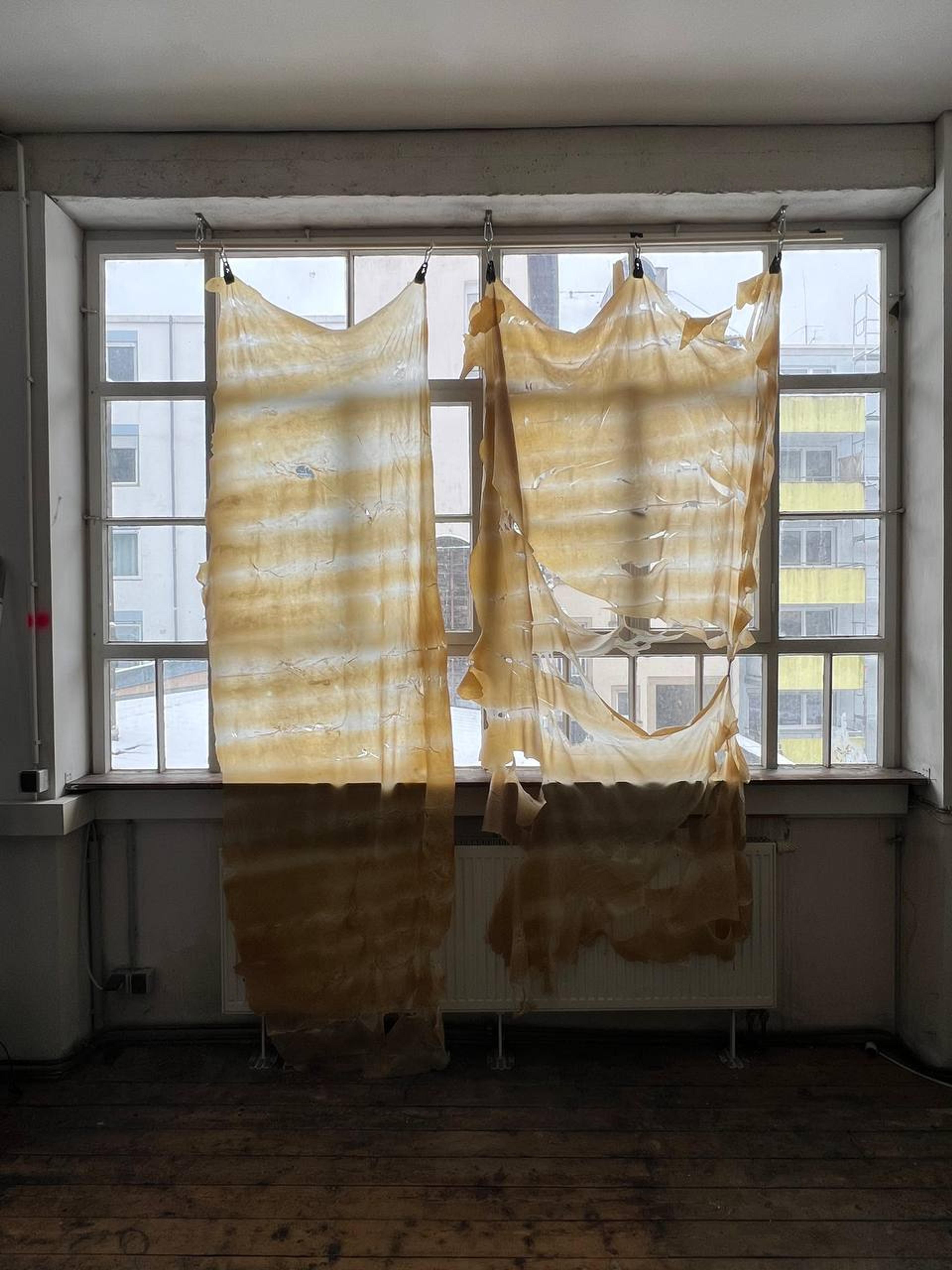 die sich durch Latexabgüsse des Ausstellungs- und Arbeitsraum selbst, einem Küchentisch als direkter Dialograum und einer Publikation als Offenlegung von Rechercheprozessen, aufbauen.