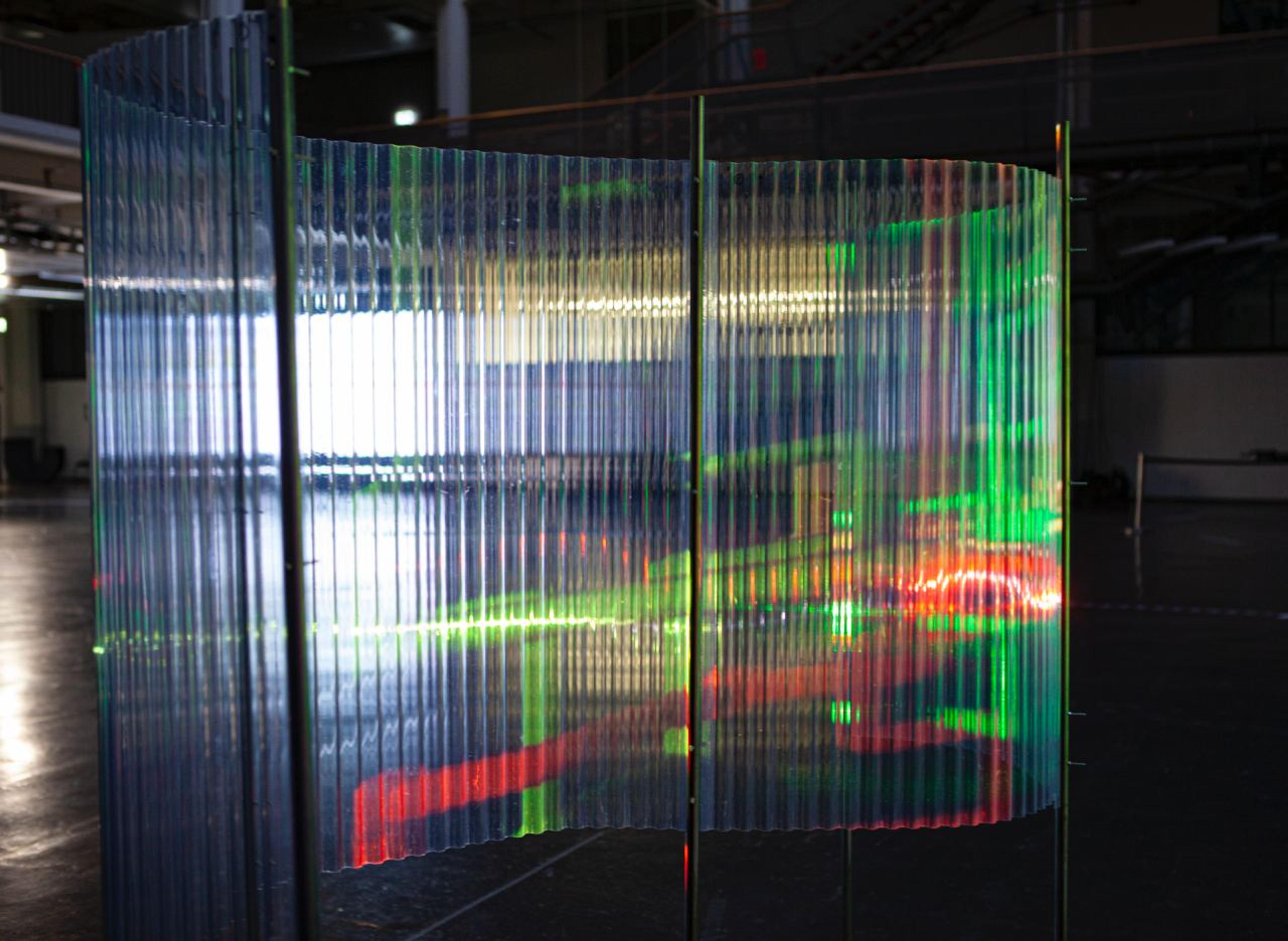 The display can be used both as a display surface and as a semi-transparent projection surface.