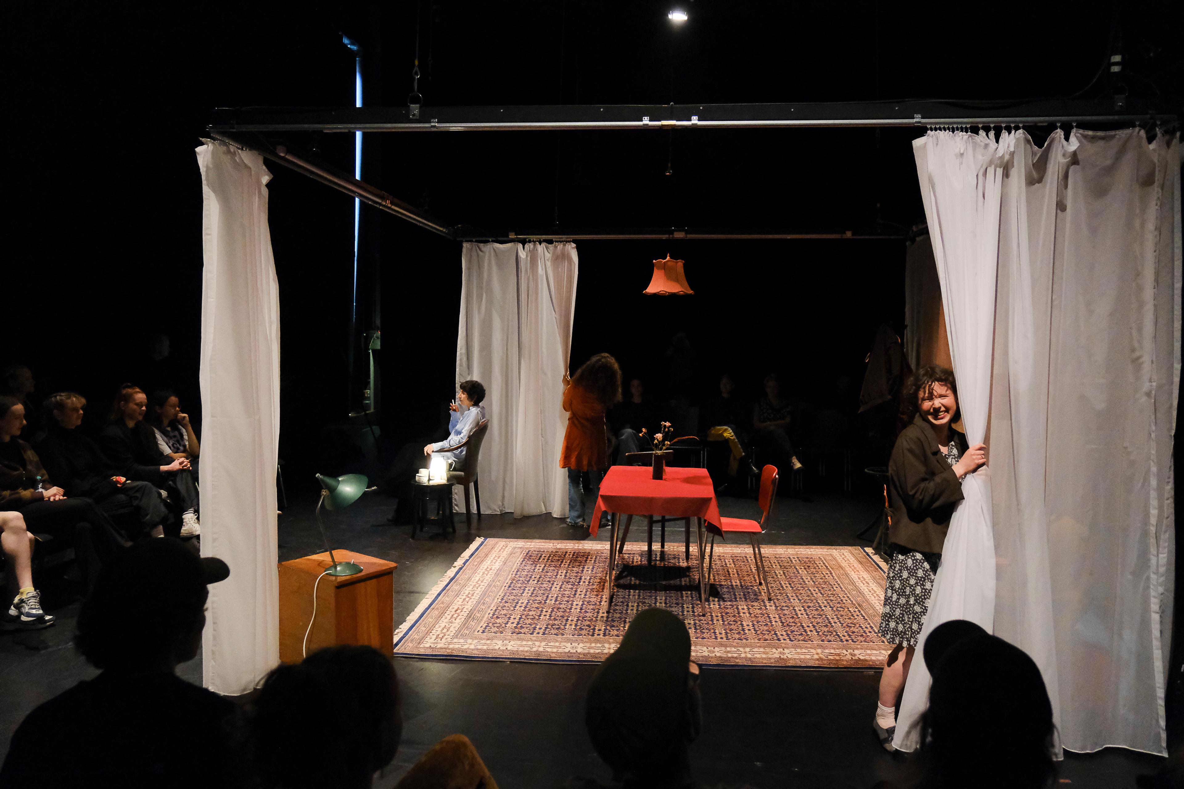 Im Rahmen von »(inne)halten – Gegenwart« zeigen die künstlerischen Teams rund um die Regiestudent:innen des 3. Studienjahres der Adk Ludwigsburg vier Projekte. Die Teams setzen sich zusammen aus Student*innen des dritten und vierten Studienjahrs Schauspiel, der ukrainischen Schauspielklasse, der Dramaturgie sowie Gästen u.a. der ABK Stuttgart, der HfG Karlsruhe und der HfBK Dresden.