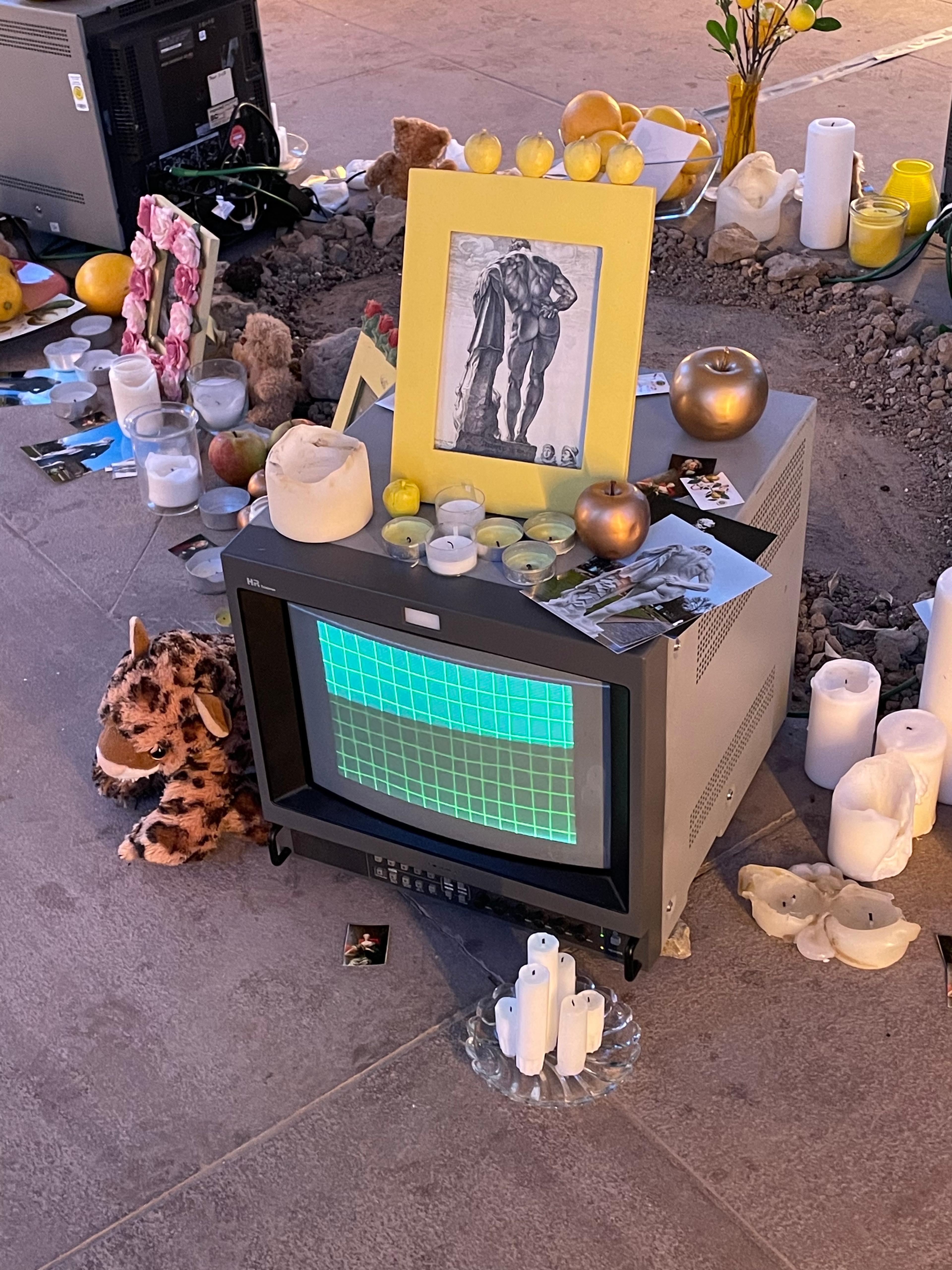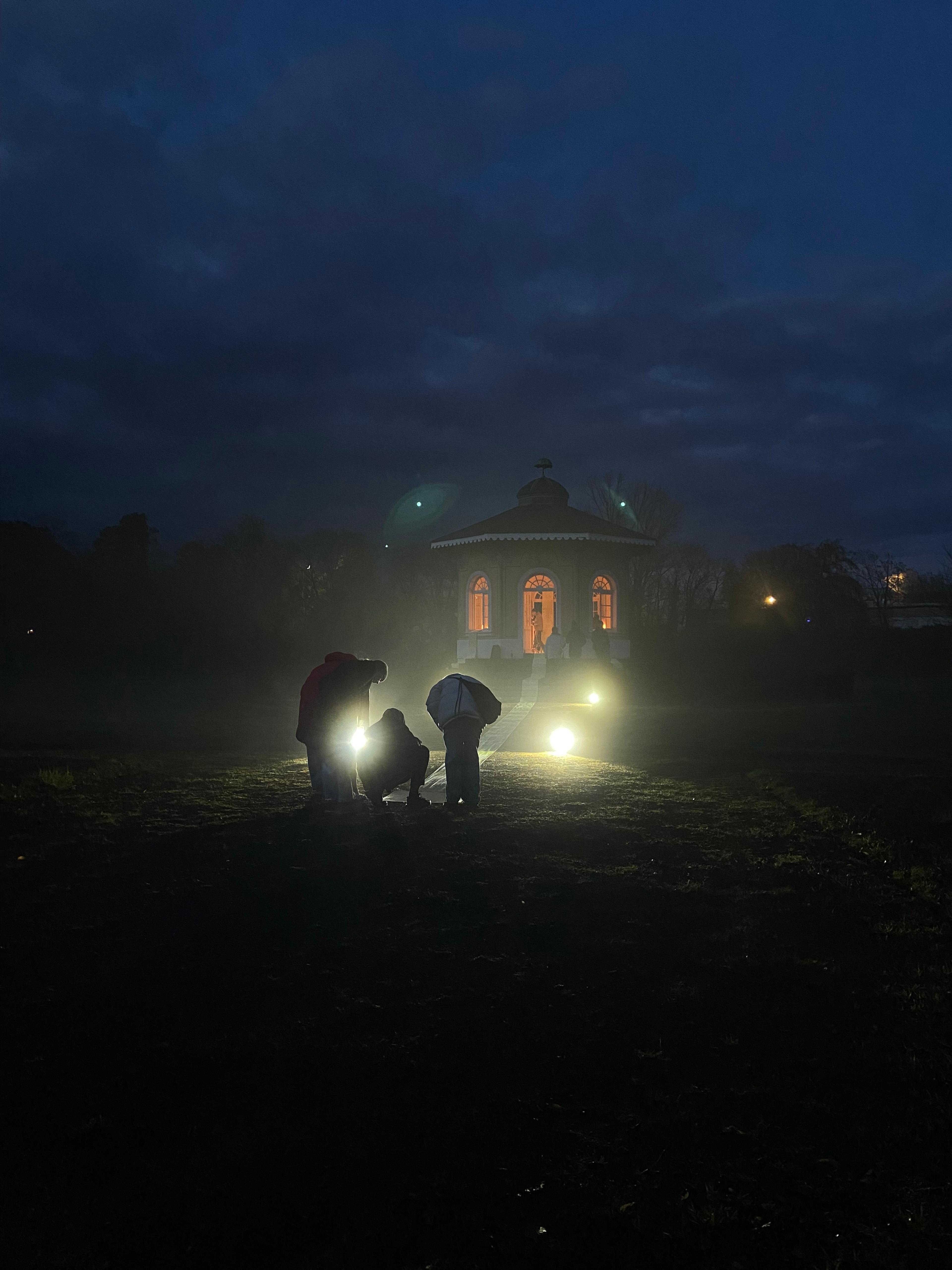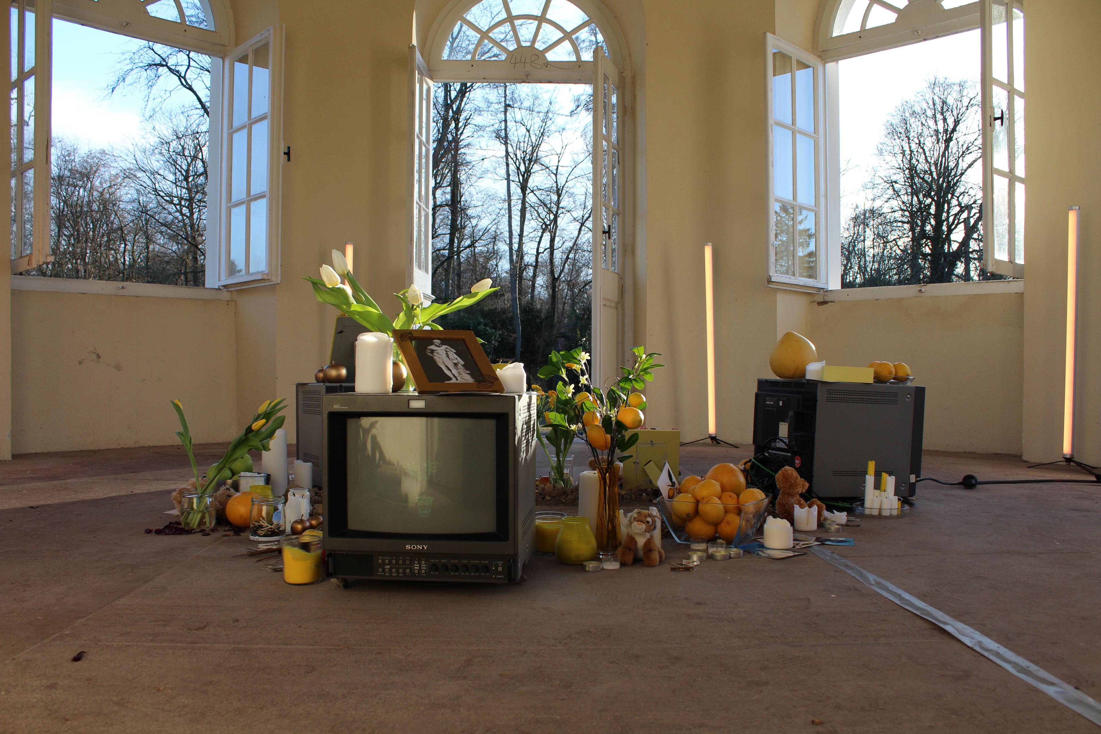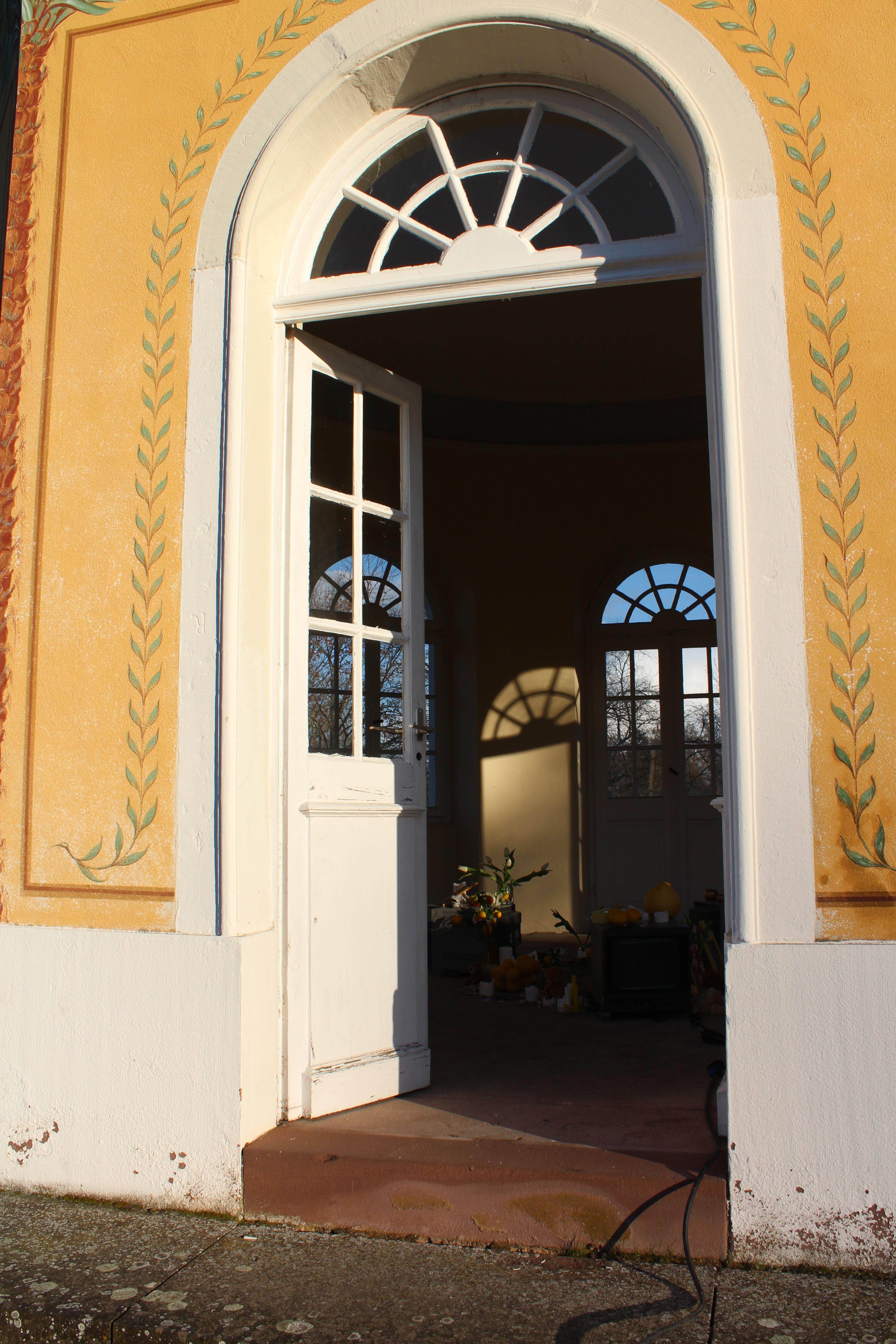 Die Spuren der ursprüngliche Anlage sind in der Linolschnittserie mit einem Motiv basierend auf einem Bepflanzungsplan des Karlsruher Barockgartens sichtbar und ziehen die Besucher:innen der Installation von einer Metallplatte, die über die historischen Zusammenhänge der Arbeit aufklärt, in das Teehaus, den letzten Überrest des Barockgartens. Im Inneren des Pavillons steht eine Gedenkstätte für Karl, Barockgärten und die vergangenen Zeit, für die diese Männer zu Symbolfiguren wurden.