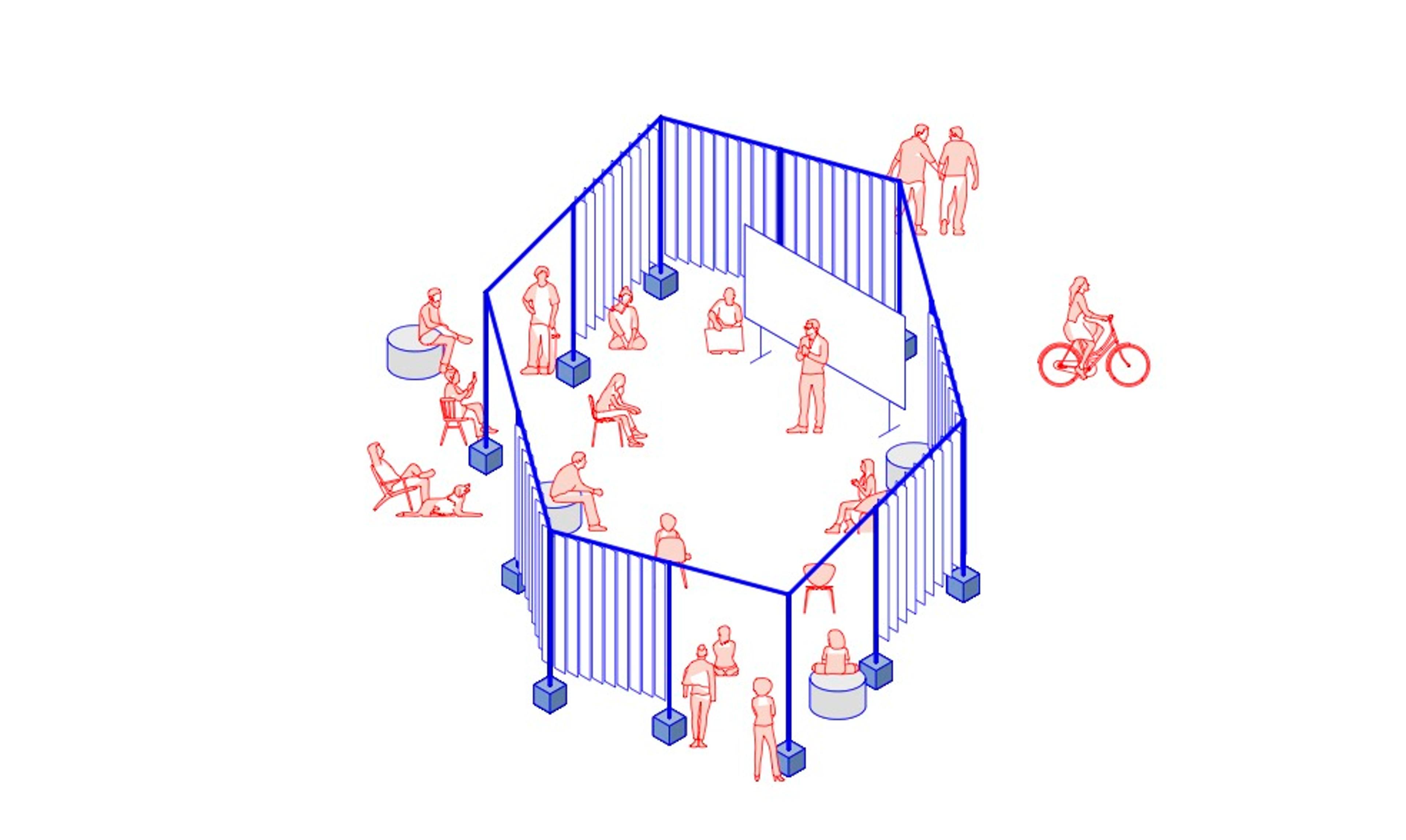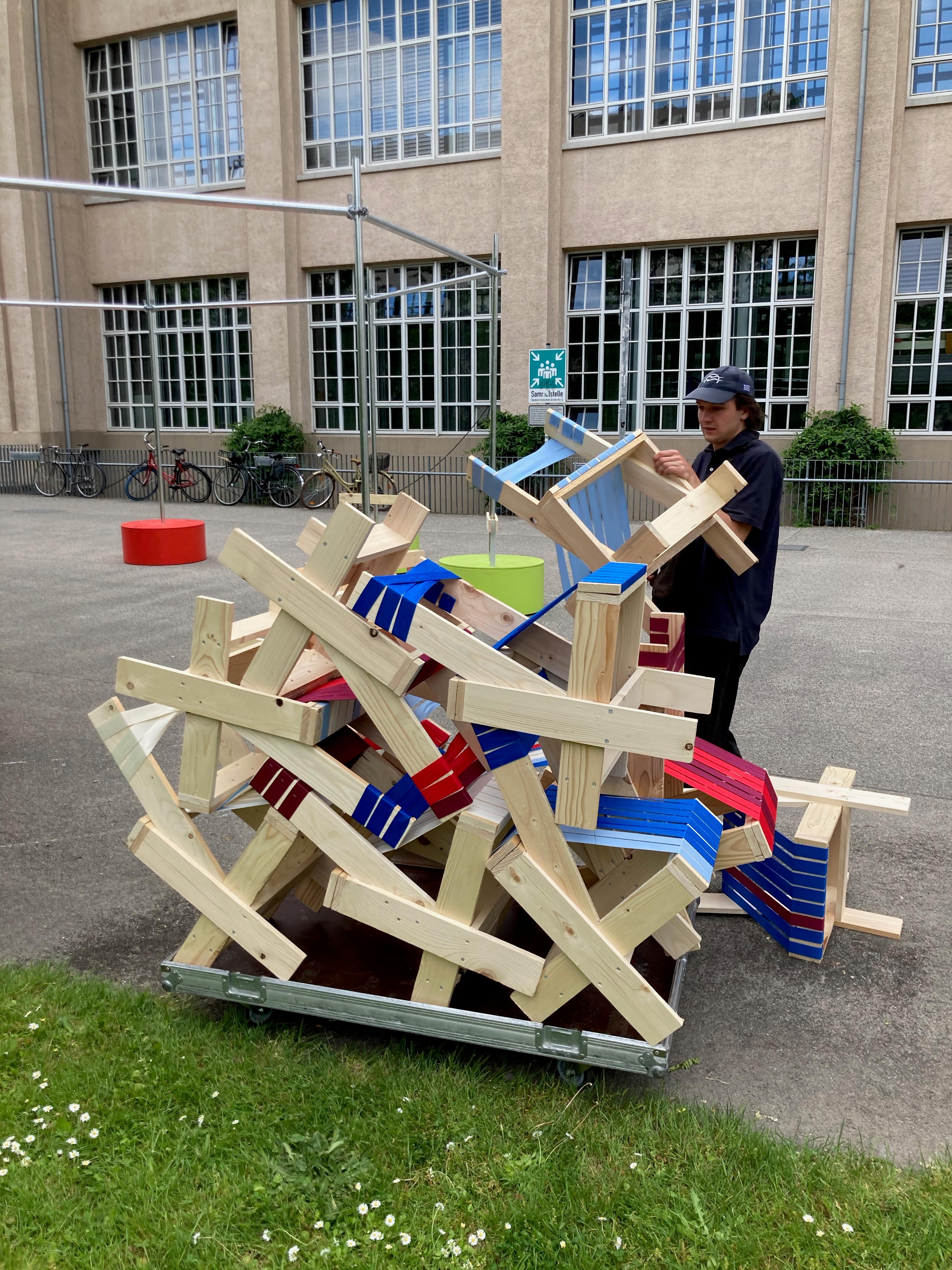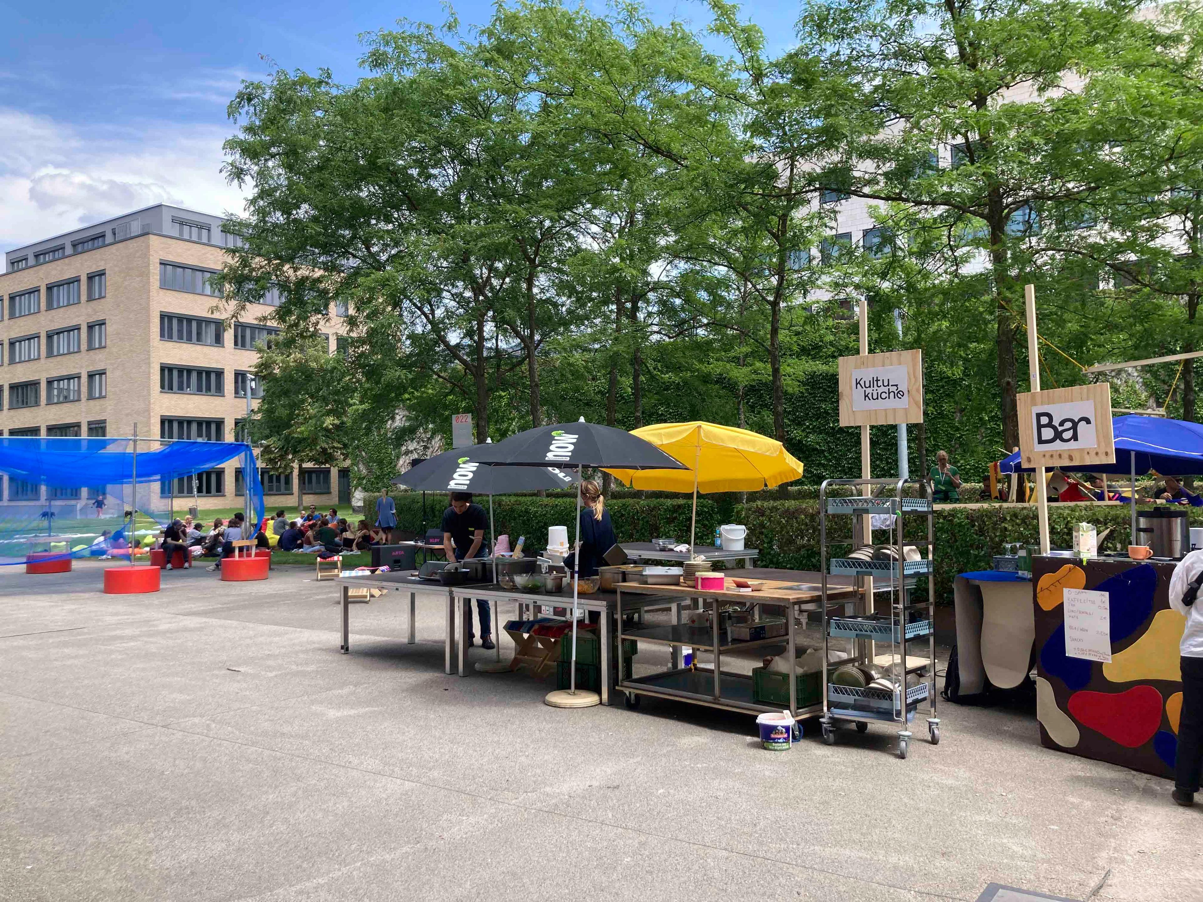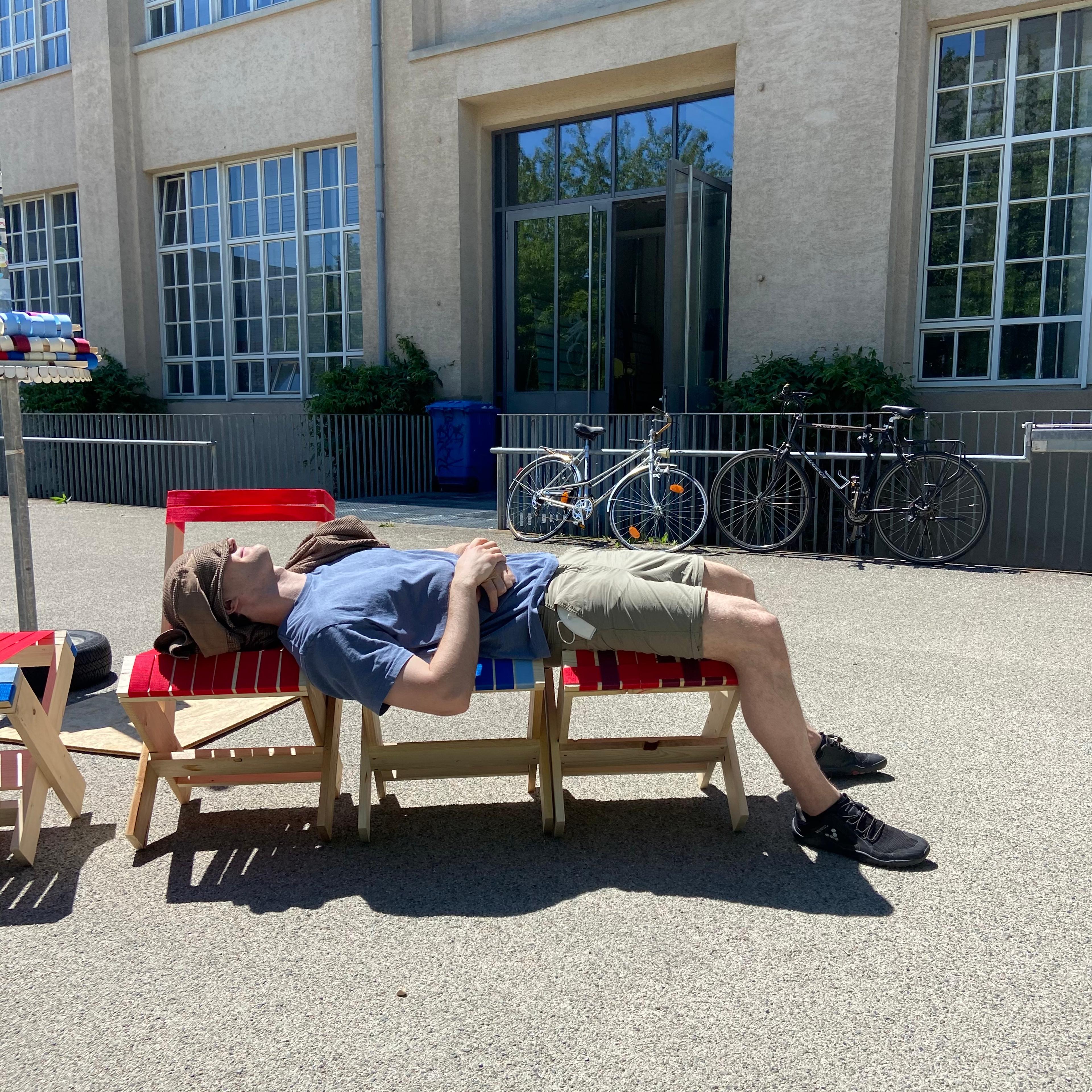 Due to the pandemic situation, collaboration and exchanges between teachers and students in the HfG workshops and studios were severely restricted for two semesters. This gave rise to the idea of the Open Campus - to create a place for the HfG in the fresh air that enables people to work, learn and meet. The Platz der Menschenrechte was chosen as the location.