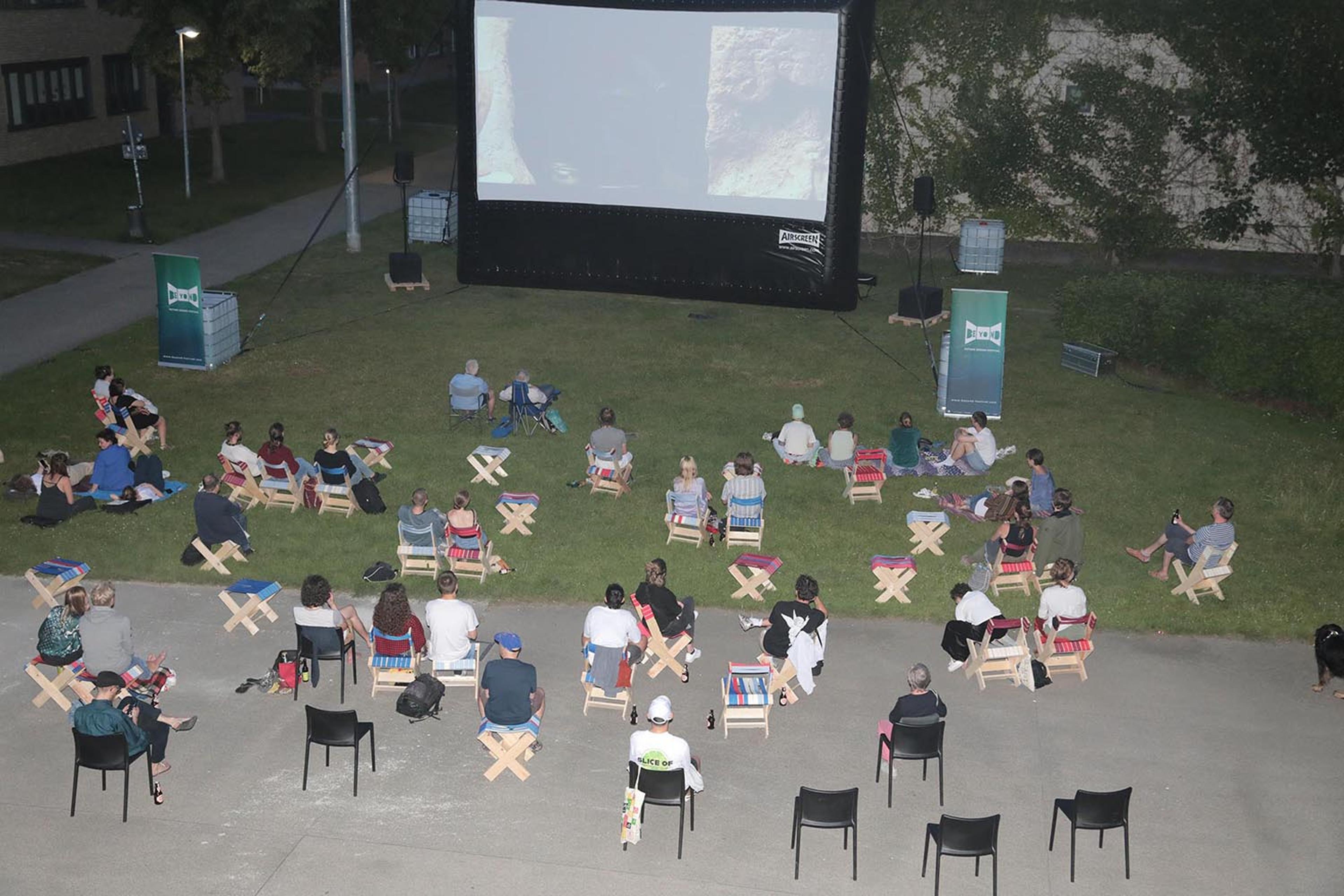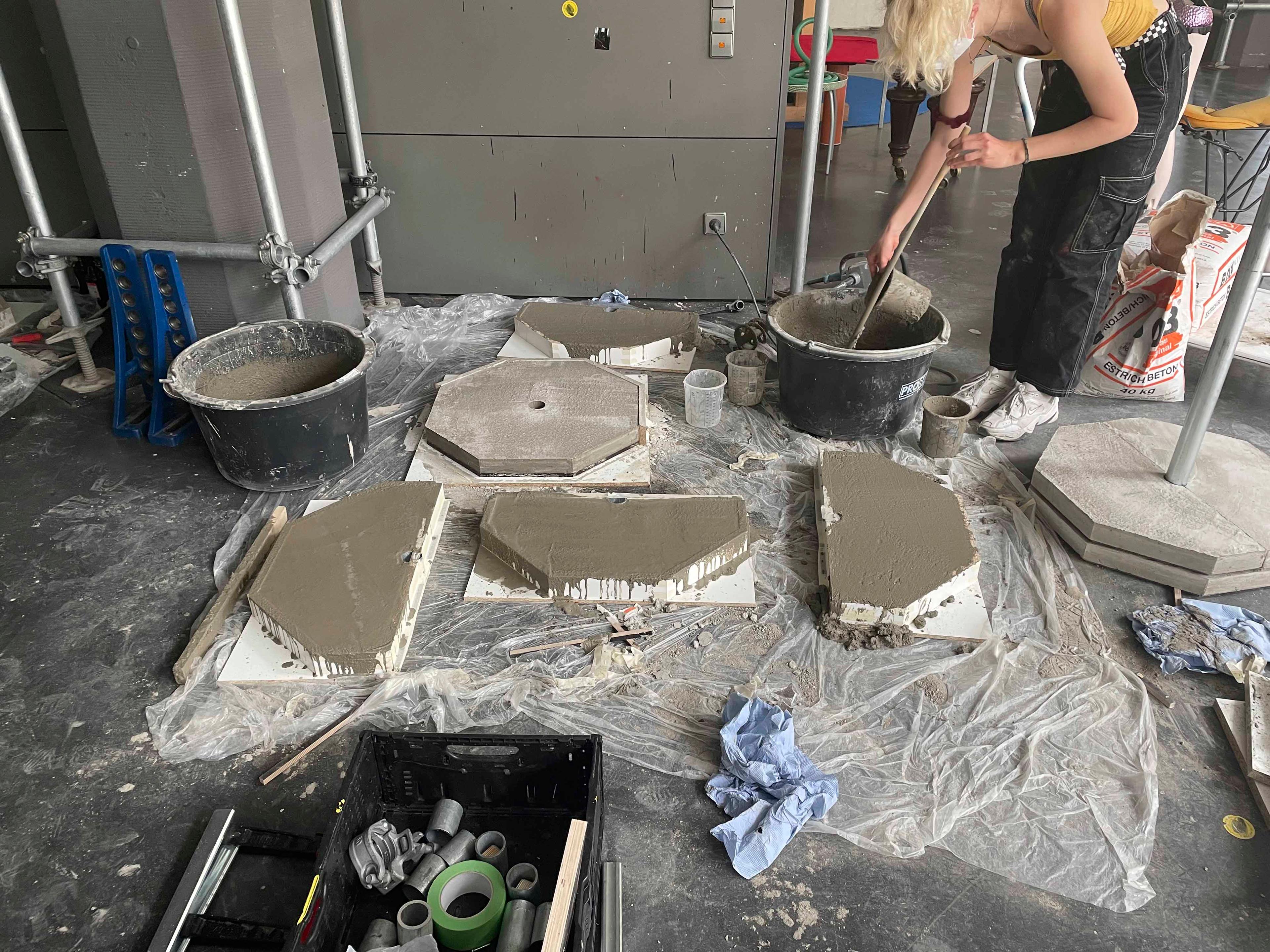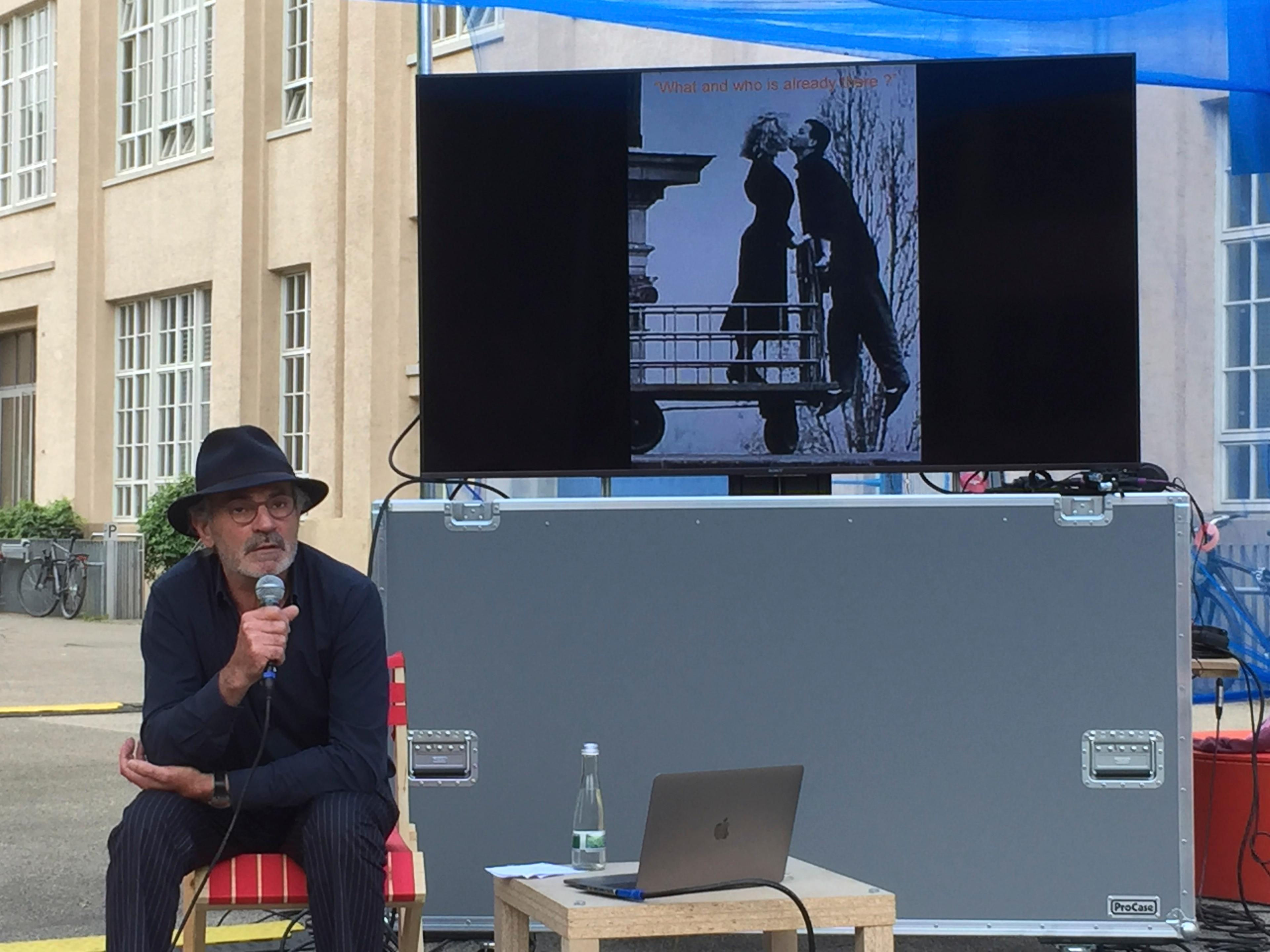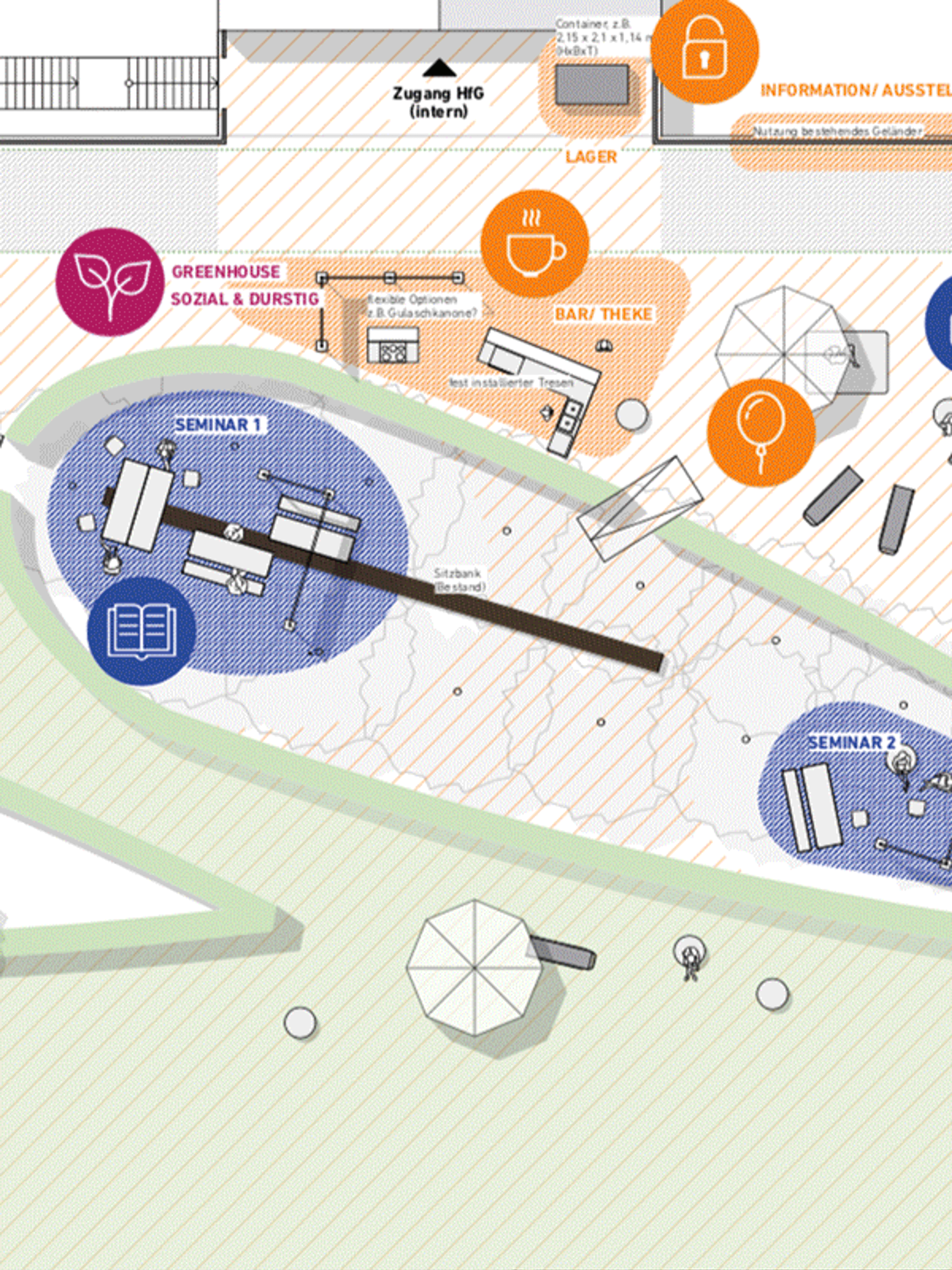 The appropriation of the space, the phased development of the Open Campus, the concept and spatial programme, as well as situational interventions and furnishings were collectively developed, tested and implemented 1:1 in several consecutive workshops. Since then, the Open Campus has been available to the HfG as a new infrastructure in the outdoor space. It is now a place for lectures, exhibitions, open-air cinema, conferences, performances ... The Open Campus is a place that brings the HfG together with the city of Karlsruhe.