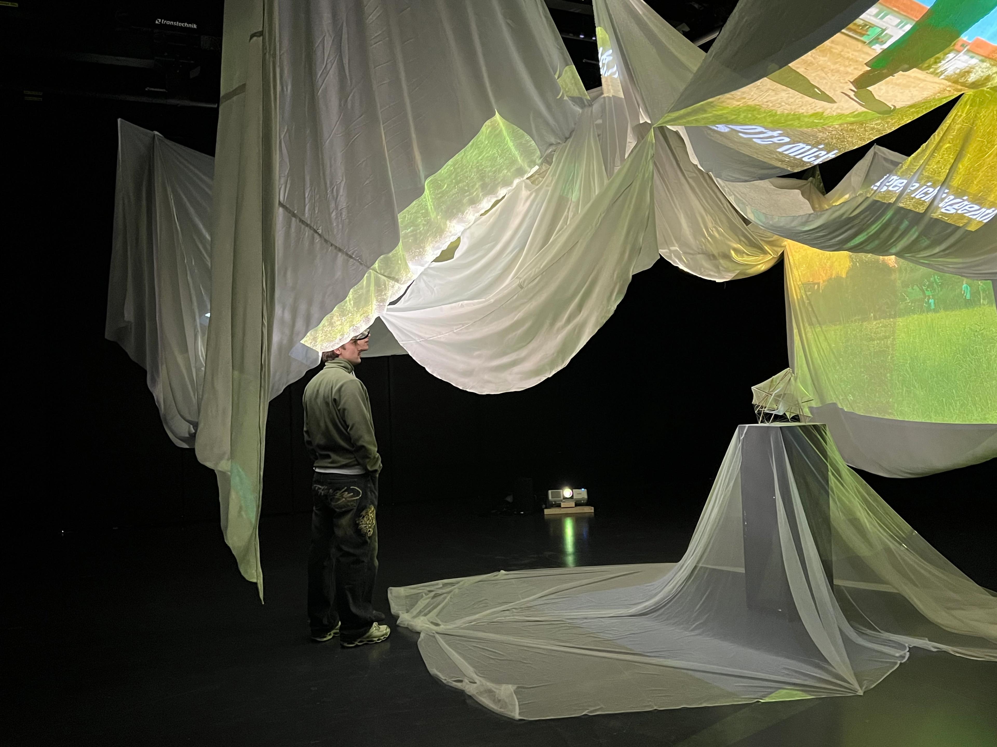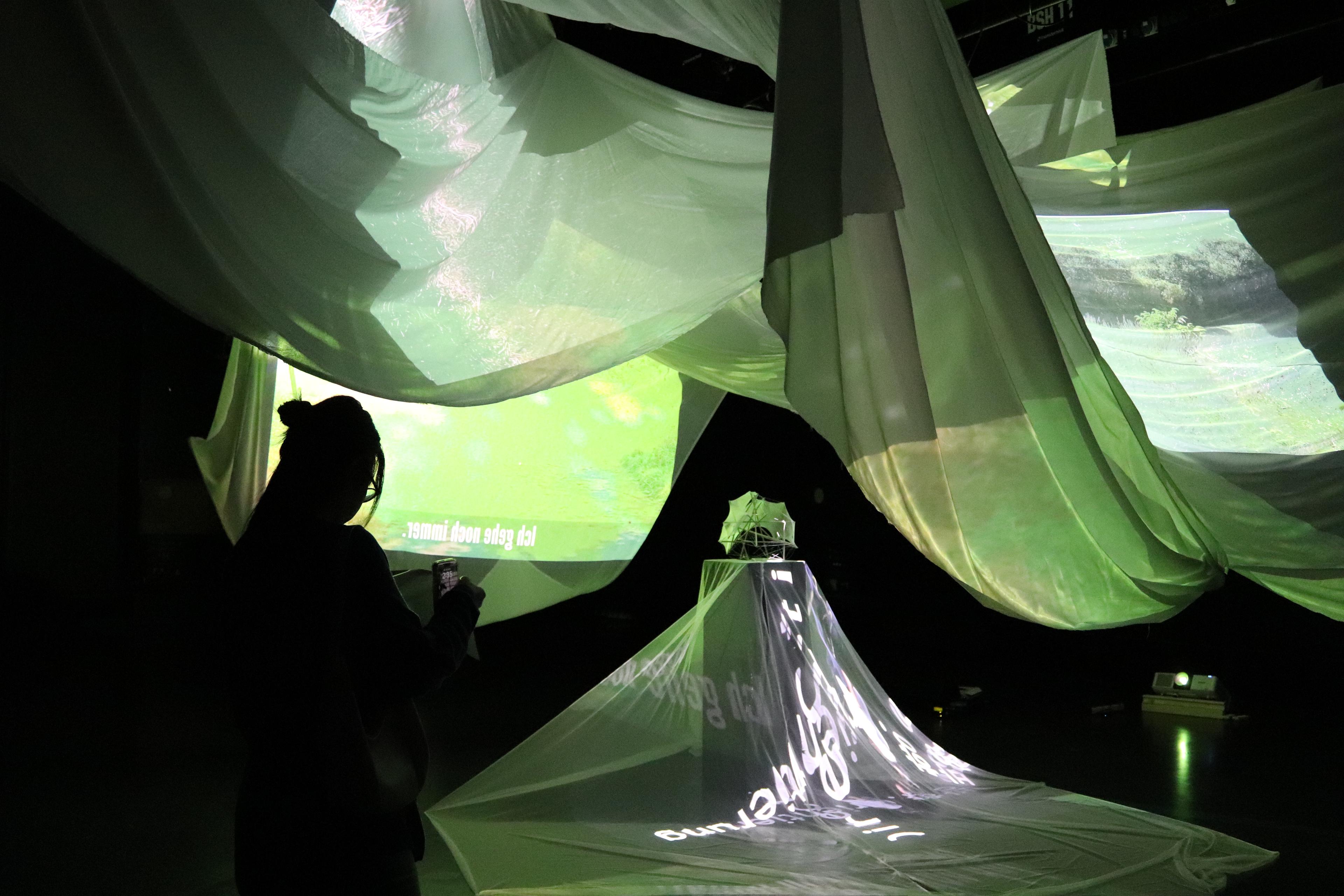 Visitors may wander freely, follow their feelings, find their own spots, or be guided by the direction of a voice flowing through the space.