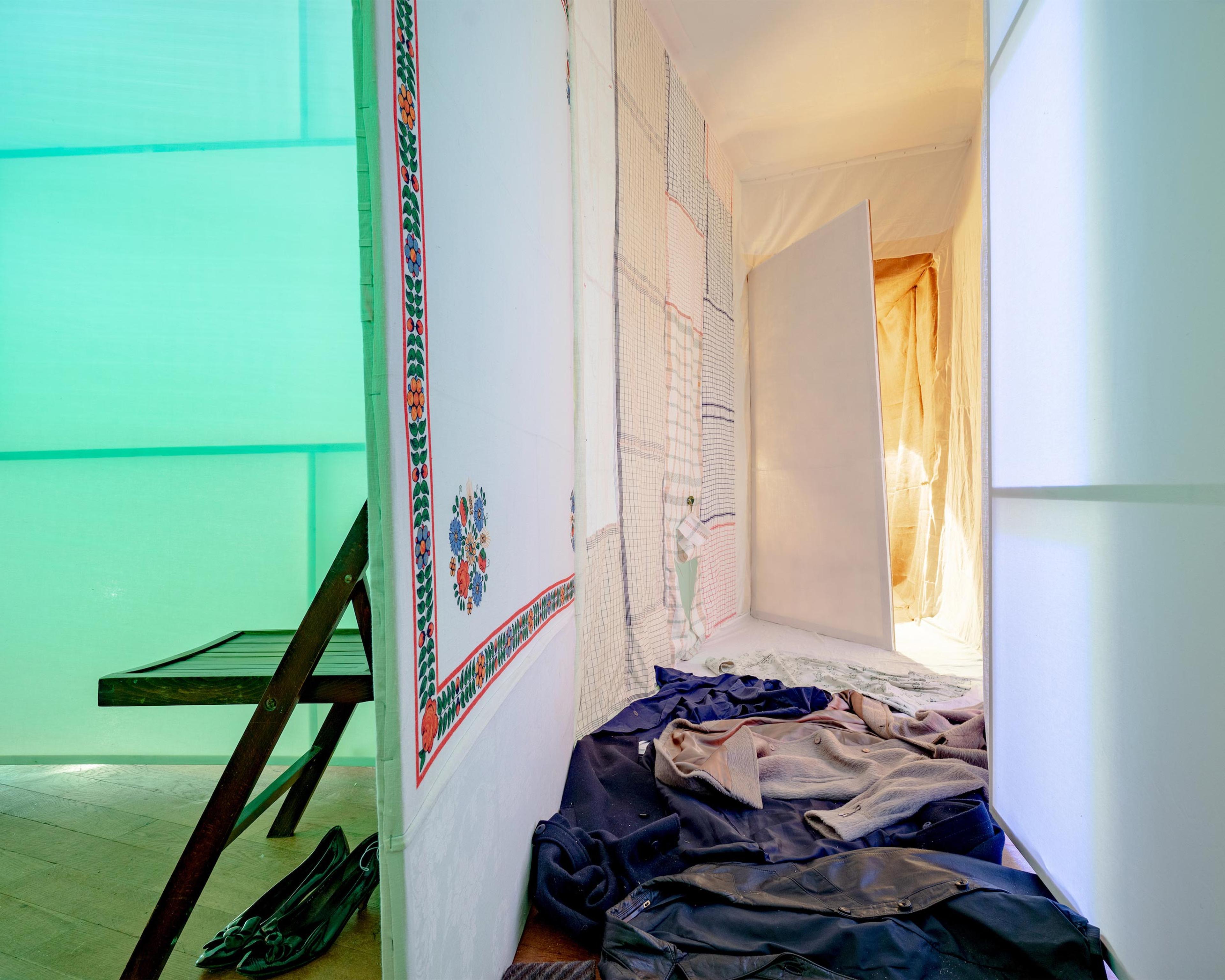 Felix Buchholz hat in der Gellertstraße 14, einer alten Fabrikantenvilla in der Karlsruher Weststadt, im Juli 2018, die Wohnung seiner verstorbenen Großmutter rekonstruiert. Die Wände und Decken dieser Rekonstruktion bestehen aus zusammengenähten Stoffen aus ebenjener Wohnung, die an einem nicht sichtbaren Hängekonstrukt angebracht sind. Man betritt die „Wohnung“, die Installation, per Konzept alleine, ohne Schuhe und solange man will.