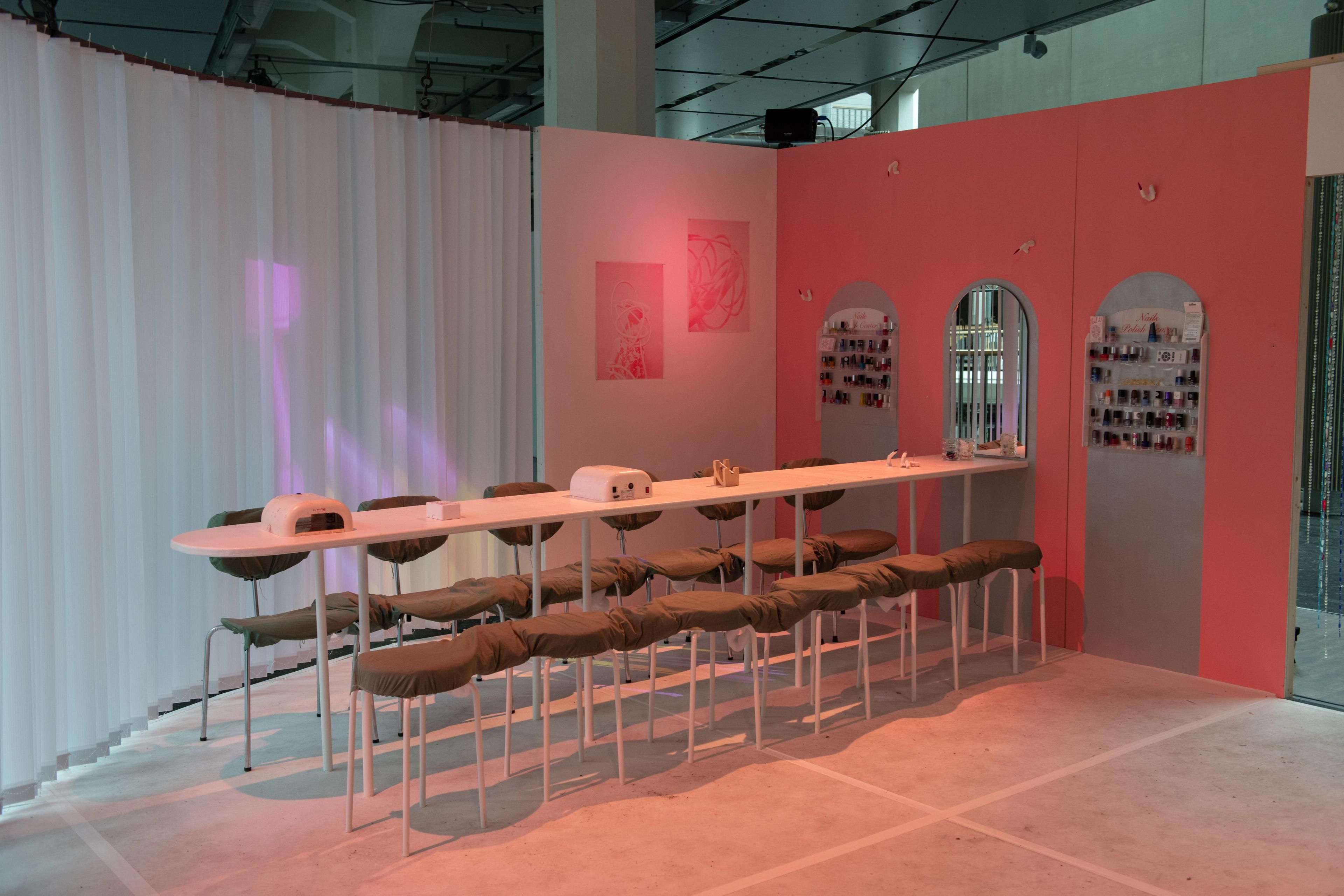 ‘Studio Kralle’ was an attempt to recreate elements of a nail salon by deconstructing the classic stage space with the help of theatre walls.