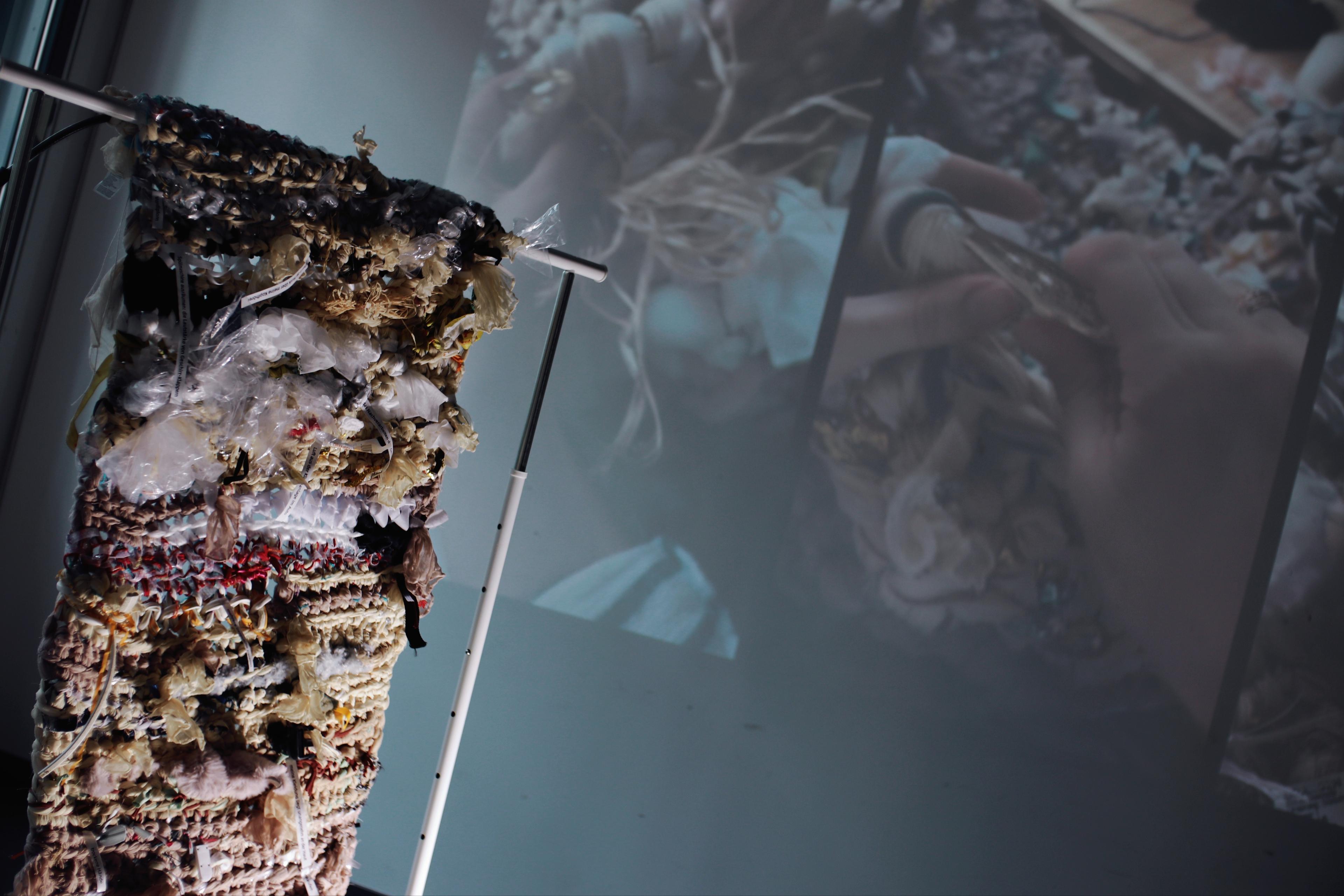 For a period of three months, I translated sensory, cognitive, and social stimuli into a crochet practice. I worked with found and collected materials, fragments that others would have thrown away. Neurotypical minds filter out what neurodivergent minds notice, collect, and process. The tactile aspect was central to the work: the textures of the materials, their resistance and the way they felt in my hands while I was crocheting.